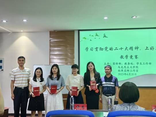 在本次活动上,13位思想政治理论课青年教师参赛选手紧扣党的二十大精神,围绕“调查研究:延安时期党的优良作风的生动践行”“中国共产党自我革命的勇气从哪里来?”“新时代好青年的红色基因密码”“以斗争促安全,助推经济高质量发展”“沙县小吃:乡村产业振兴的福建实践”“从才溪乡调查看如何坚持党的群众路线”“人与自然和谐共生的现代化——以长汀的生动实践为例”等主题,结合各自的教学科目,进行各具特色的教学片段展示。经过激烈角逐,大赛共评出一等奖1名,二等奖3名,三等奖4名,优秀奖5名。具体名单如下:一等奖:叶陈钦 二等奖:陈翠、赵敏、林明 三等奖:黄小勤、徐开娟、陈彬、林超 优秀奖:陈阳、蓝庆专、林甦垚、郑南希、陈香琴。