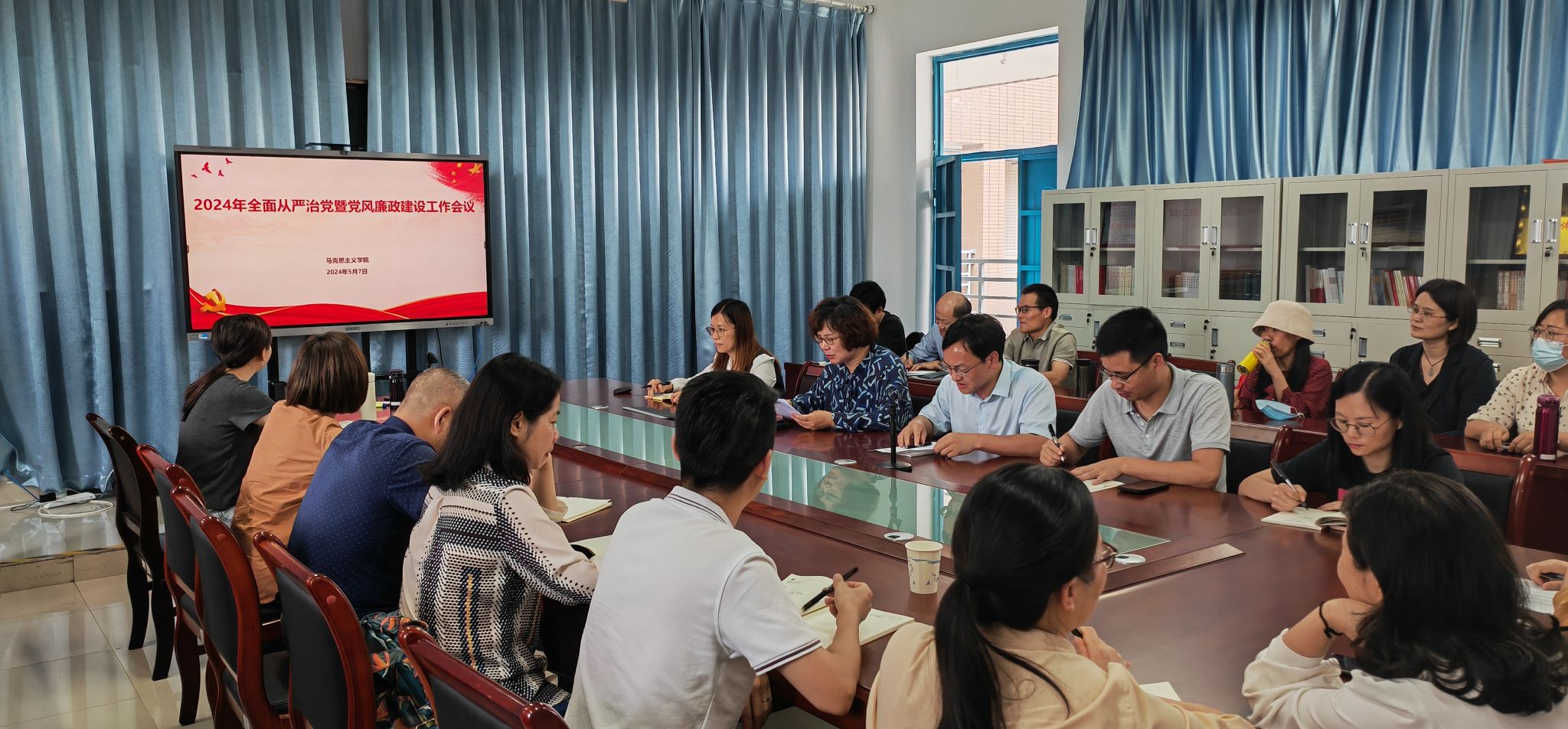 5月7日下午,beat365正版唯一官网在诚信楼514会议室召开2024年全面从严治党暨党风廉政建设工作会议,学院全体党员参加,会议由学院党委书记林萍主持。
