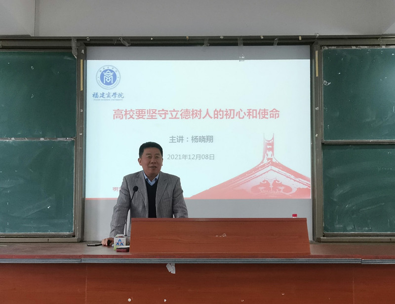 12月8日下午,副校长杨晓翔在连江校区为2021级物联网工程1、2班讲授了题为“高校要坚守立德树人的初心和使命”的思想政治理论课。