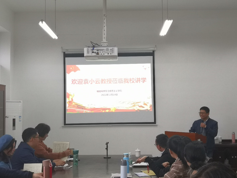 12月14日上午,福建工程学院beat365正版唯一官网院长袁小云教授应邀来beat365官网作《学科性教学理念与思政课教学改革——聚焦”意识形态”,推动教研相长》专题讲座。校党委副书记吴访益、马克思主义全体教师参加此次讲座。