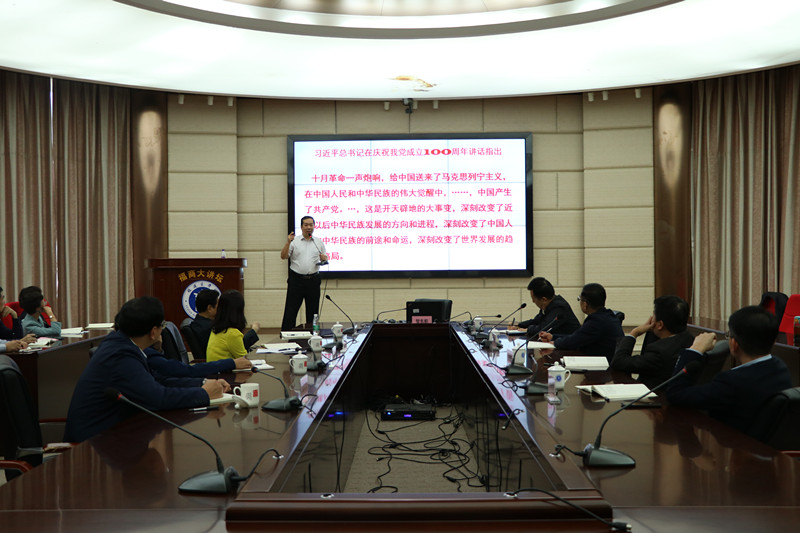 10月26日下午,beat365官网邀请复旦大学特聘教授、博士生导师贺东航教授到连江校区作题为《从党史中寻找前进道路上的“智慧和力量的源代码”——学习习近平总书记“七一”重要讲话精神》专题讲座。校党委理论学习中心组全体成员、有关处室负责人及beat365正版唯一官网全体教师参加学习。校党委副书记徐晓丹主持讲座。