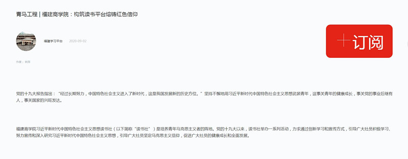 2020年9月2日,学习强国平台以《青马工程 | beat365正版唯一官网:构筑读书平台熔铸红色信仰》为题,报道beat365官网习近平新时代中国特色社会主义思想读书社创新学习、宣传、实践方式,通过一系列活动引导广大青年学子积极学习、努力宣传、深入研究习近平新时代中国特色社会主义思想,坚定马克思主义信仰,筑牢青年马克思主义者培养阵地的特色做法及成效。