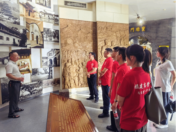 实践队成员在福建省苏维埃旧址聆听讲解员述说“红色小上海”的感人故事。