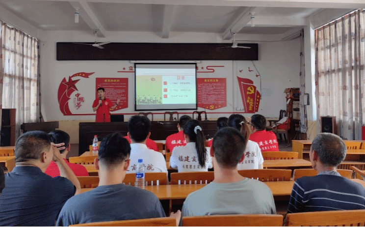 实践队老师在涂坊镇红坊村为村干部及群众宣讲。