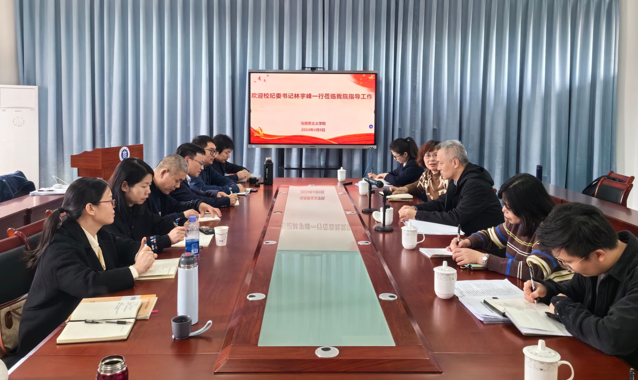 4月9日,校纪委书记林宇峰一行赴beat365正版唯一官网开展调研并召开座谈会,学院领导班子成员、各教研室主任及教师代表参加。