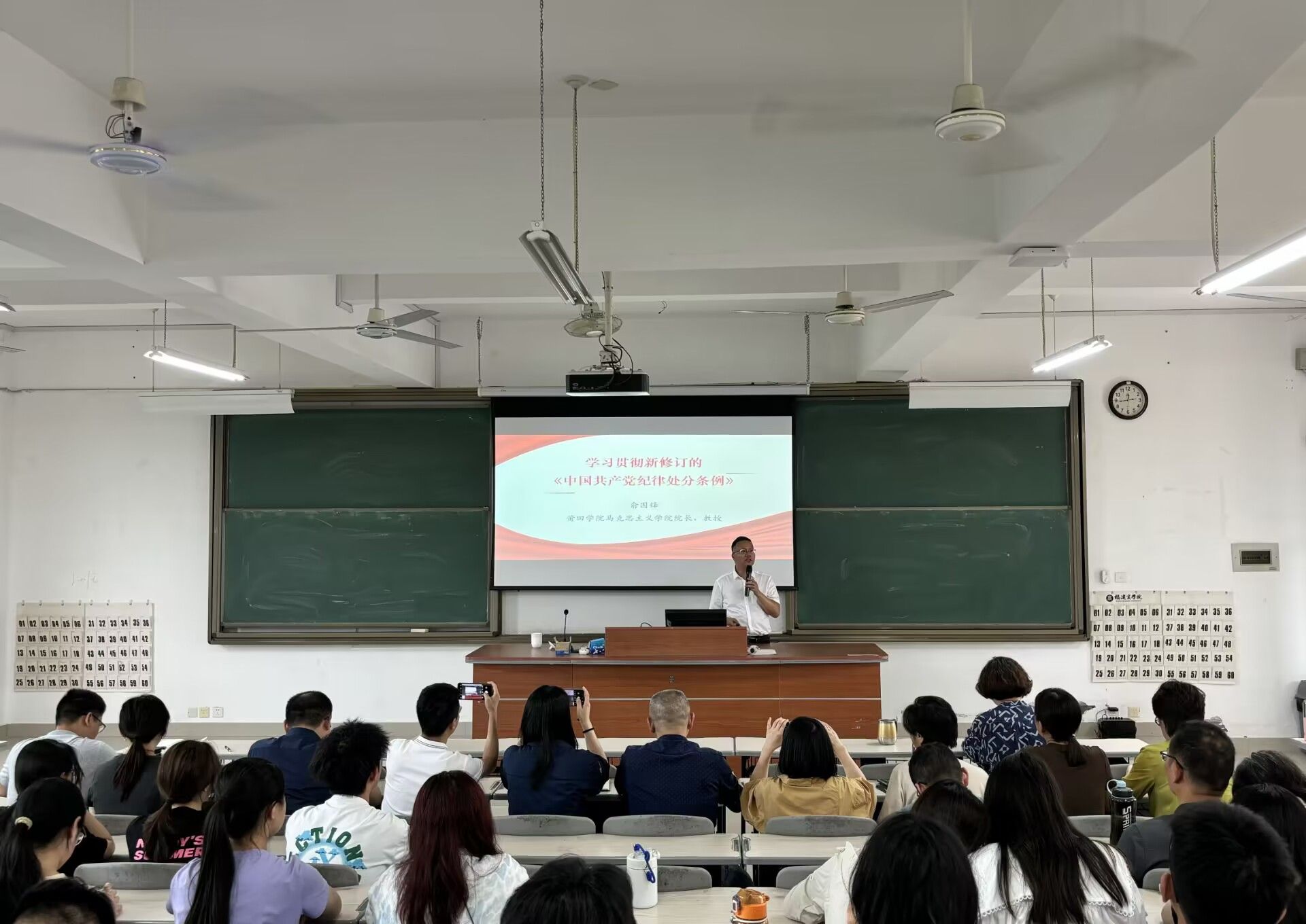 为深入学习贯彻修订后的《中国共产党纪律处分条例》,5月7日下午,beat365正版唯一官网、旅游与休闲管理学院联合举办了“学习贯彻新修订的《中国共产党纪律处分条例》(以下简称《条例》)”专题讲座,讲座由莆田学院马院院长俞国锋教授做报告。beat365正版唯一官网、旅游与休闲管理学院全体党员教师、部分学生党员及习近平新时代中国特色社会主义思想读书社社员共100多人参加本次讲座。