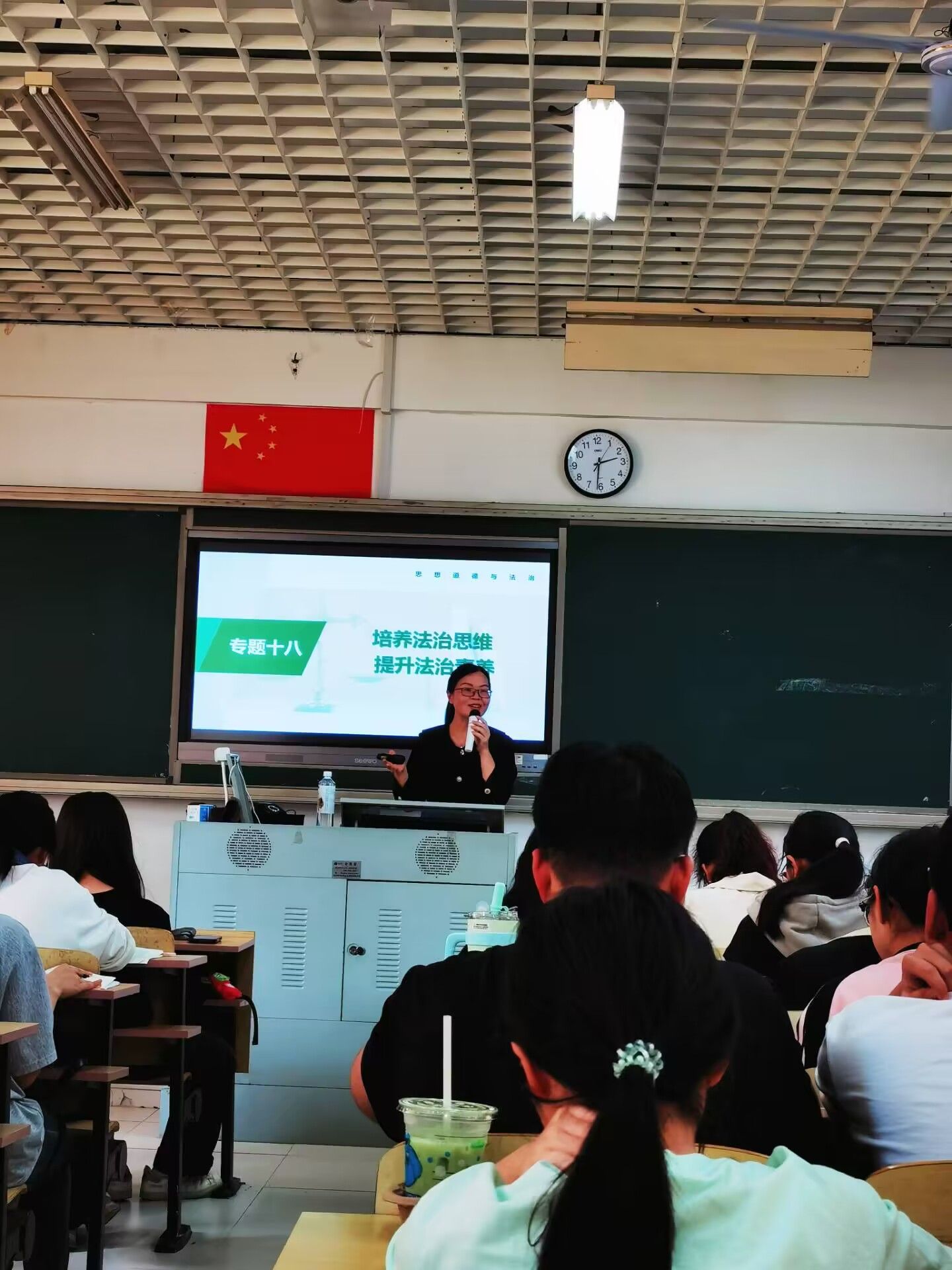 5月17日下午,beat365正版唯一官网思想道德与法治教研室蓝福秀老师在马尾校区至善楼102教室开展题为“培养法治思维 提升法治素养”的数智化教学展示,学院教师及相关班级学生到场观摩。