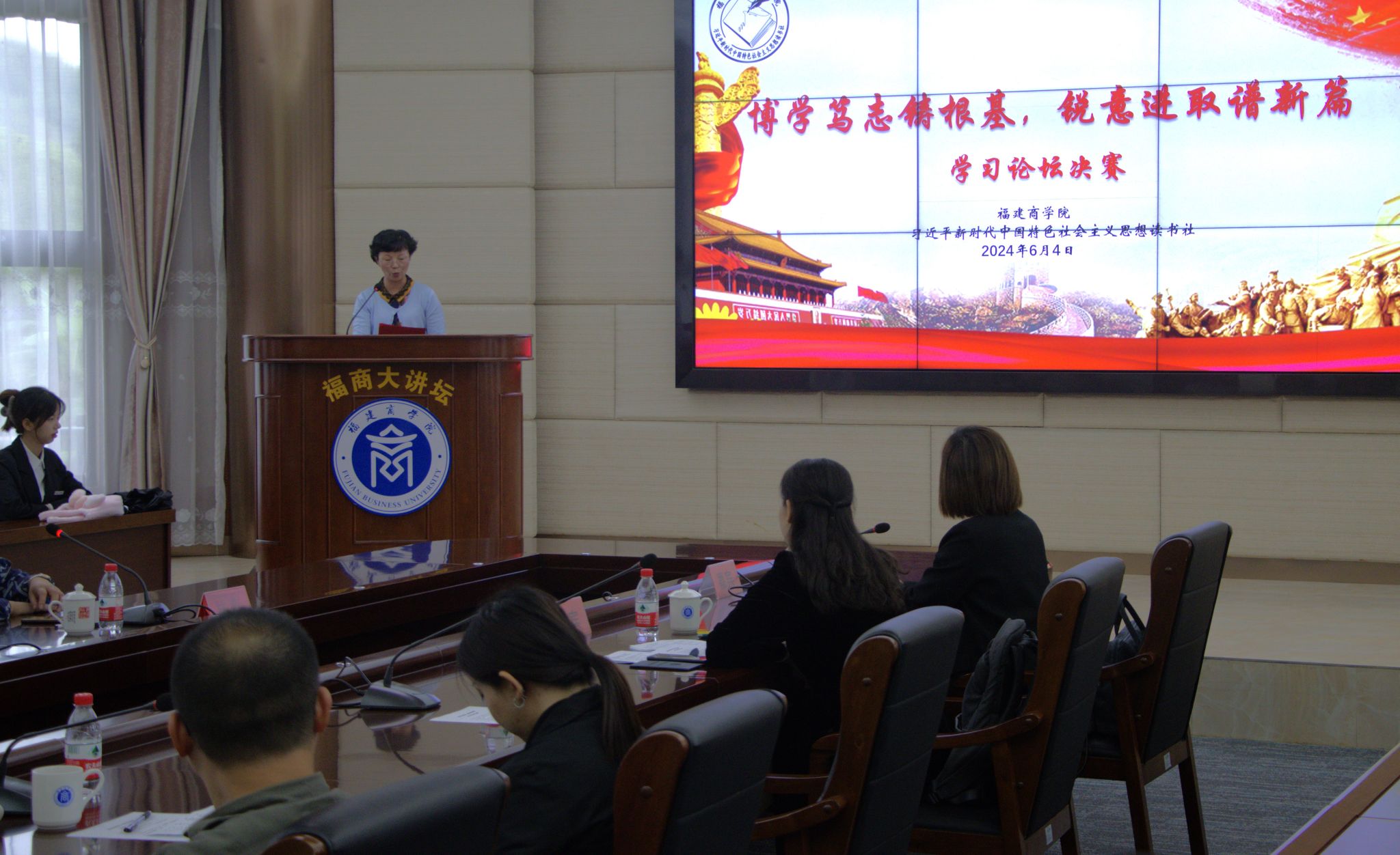 2024年6月4日,beat365正版唯一官网习近平新时代中国特色社会主义思想读书社与马列经典著作读书社,在连江校区明德楼视频会议室联合举办了主题为“博学笃志著根基 锐意进取谱新篇”的学习论坛决赛。学校林文艺副校长、beat365正版唯一官网负责人和读书社指导老师、beat365正版唯一官网部分教师及读书社社员等近百名师生参加此次活动。