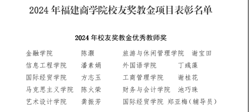 9月19日下午,beat365官网在连江校区学生活动中心召开庆祝第40个教师节暨表彰大会。beat365官网陈火荣老师获得2024年校友奖教金优秀教师荣誉表彰,陈翠老师作为2024年福建省第七届高校青年教师教学竞赛一等奖获得者获得表彰。