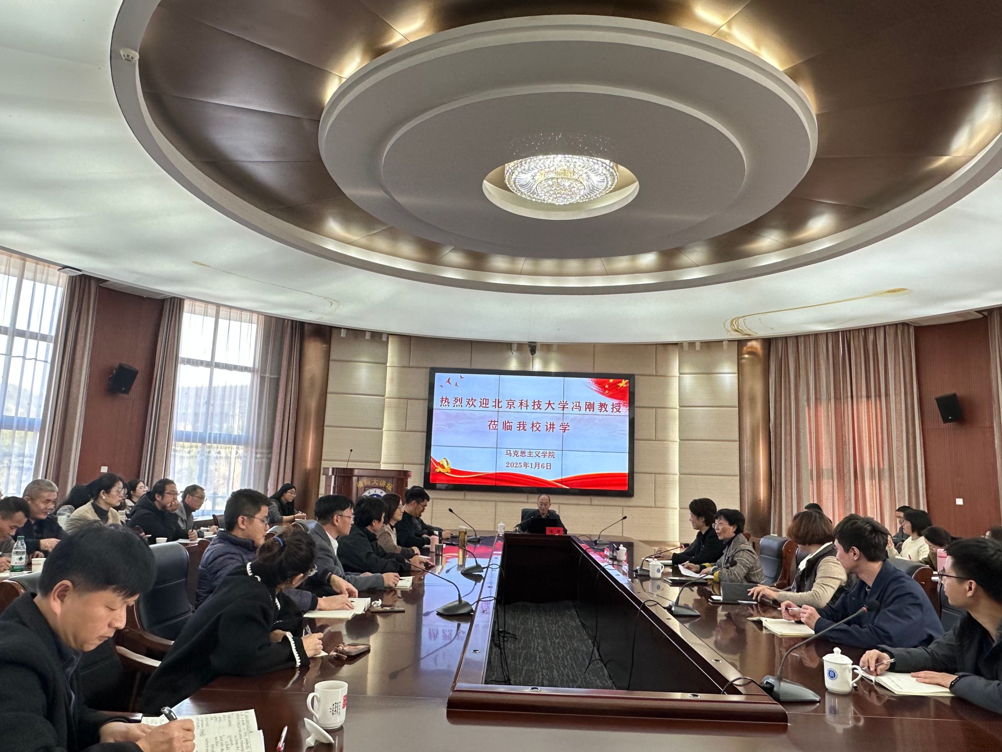 1月6日下午,北京科技大学思想政治工作研究院院长、原教育部思政司司长冯刚教授应邀来beat365官网作题为《文化现代化视域下的思想政治教育创新发展》的学术讲座。校长程灵、副校长林文艺、beat365正版唯一官网全体教师、学工处、团委及辅导员共80多人参加了此次讲座。