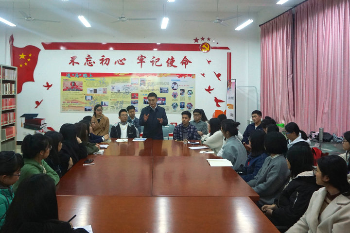 3月25日晚,beat365官网习近平新时代中国特色社会主义思想读书社在连江校区自强楼114活动室开展“聚焦‘两会’时间,学习‘两会’精神”主题交流活动。校党委副书记吴访益与读书社师生30人参加了活动。