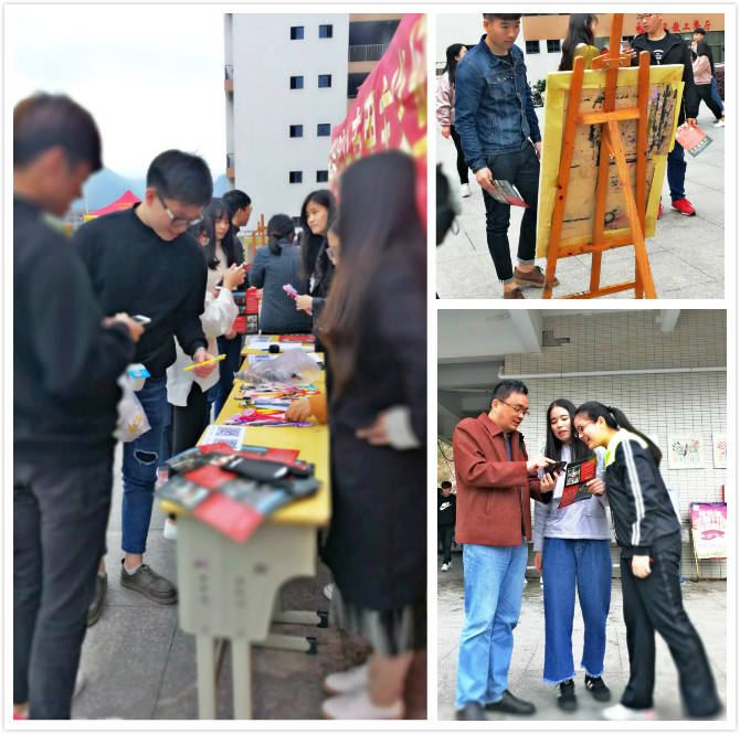 本次活动通过展板的形式向全校师生介绍了读书社,并以扫码送礼品的形式邀请同学们关注读书社的公众号,给大家提供更好的学习马克思主义理论的平台。活动刚刚开始,就吸引了许多学生驻足,大家纷纷拿出手机扫码关注公众号。与此同时社徽征集活动也在如火如荼的进行,经过我社多名干事的不懈努力,报名的人数越来越多,本次活动评选出最优秀的社徽将用于和读书社有关的旗帜,印刷品及其他衍生产品。