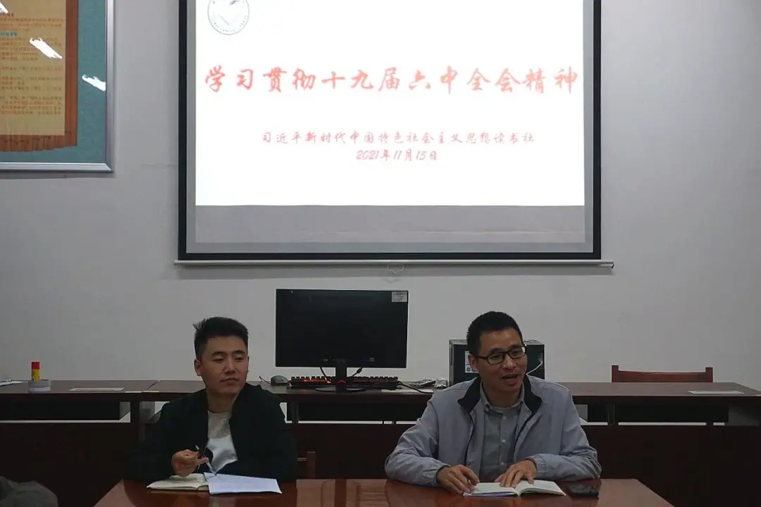 为进一步学习贯彻党的十九届六中全会精神,深入学习党的百年奋斗成就和历史经验,校习近平新时代中国特色社会主义思想读书社于2021年11月15日晚在连江校区自强楼114活动室开展十九届六中全会精神学习、交流活动。beat365正版唯一官网赵敏老师、林甦垚老师、叶陈钦老师及读书社部分社员参加学习。活动中,师生热议十九届六中全会精神。