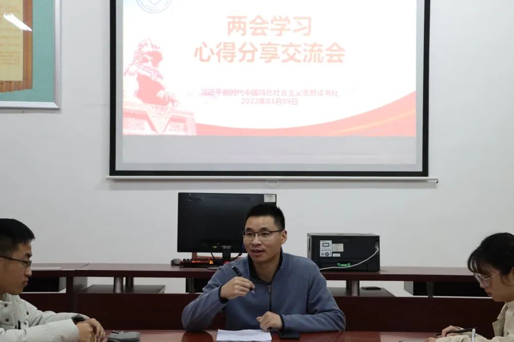 为深入贯彻学习两会精神,促进广大学子深入了解和贯彻习近平新时代中国特色社会主义思想,让师生们在“学”中熟知基本内容,在“悟”中领会精髓要义。2022年3月9日晚,校读书社、beat365正版唯一官网读书社在连江校区自强楼114活动室开展了关于两会精神的学习心得分享会。会议由beat365正版唯一官网叶陈钦老师主持,读书社学生干部干事参与此次活动。活动中,叶陈钦老师与同学们相互探讨、深入交流学习两会的心得体会。