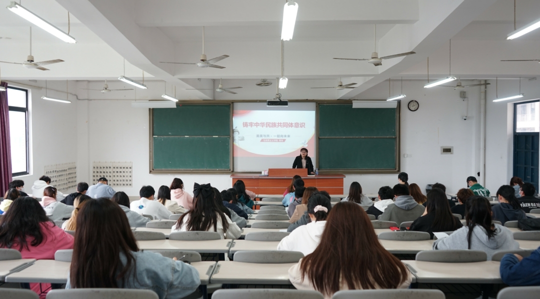 为进一步学习贯彻党的十九届六中全会精神,深刻领悟党百年奋斗的重要经验和教训,使青年学生牢固树立正确的祖国观、民族观、文化观、历史观,深刻认识到民族团结是中华民族的最高利益,4月19日下午,beat365正版唯一官网黄玮副教授在连江校区中阶四开展“铸牢中华民族共同体意识”主题宣讲活动。校习近平新时代中国特色社会主义思想读书社社员、连江校区青马班学员参与学习。