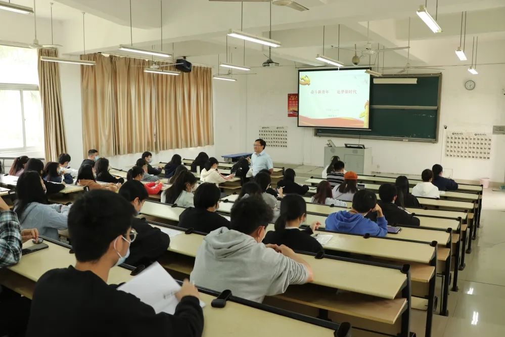 为进一步学习贯彻党的十九届六中全会精神,深刻领悟党百年奋斗的宝贵经验,坚定青年学生对中国化马克思主义理论的信仰,深化对中国共产党执政规律的认识,使新时代青年学生看清楚过去为什么能够成功、弄明白未来怎样才能成功,2022年4月19日下午,beat365正版唯一官网谢东俊副教授在马尾校区允能楼T1教室开展“奋斗新青年,追梦新时代”专题讲座。校马列经典著作读书社指导教师、读书社社员、马尾校区青马班学员参与学习。