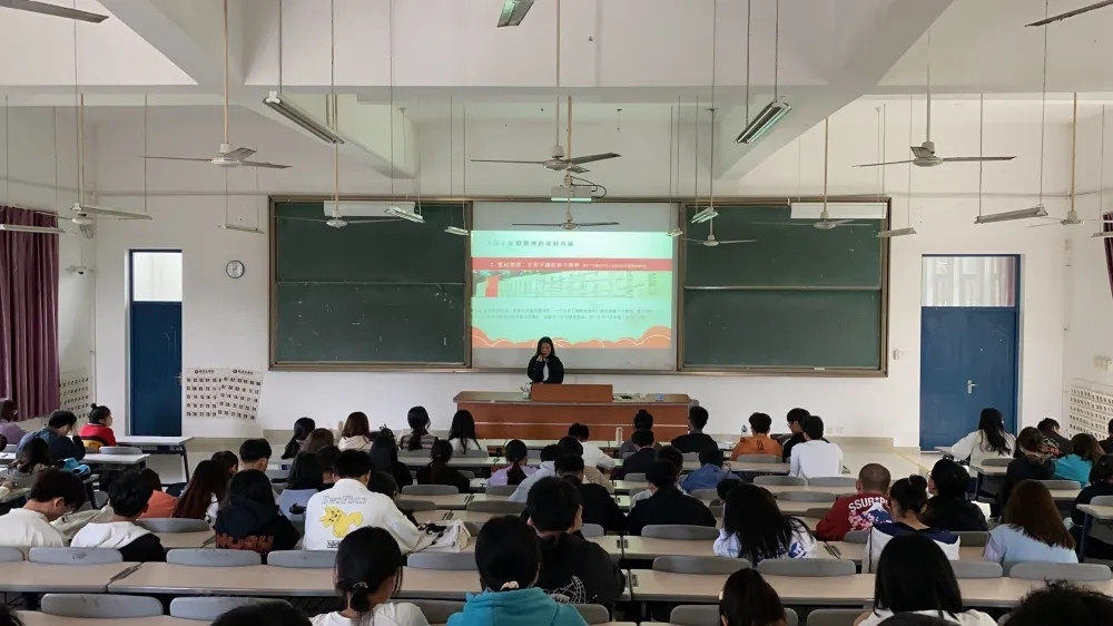 10月24日、25日,校读书社何灵珊同学分别为读书社社员和校社联学生干部开展了题为“红船映初心 扬帆再起航”的宣讲,共有160多人参加学习。宣讲活动中,何灵珊同学运用生动的历史故事为大家阐释了“红船精神”的内涵,分析了“红船精神”的历史意义;同时,她结合自身的学习、工作讲述了“红船精神”的现实价值。她在宣讲中认为,红船精神是我们培育理想信念的丰厚沃土,是我们涵养社会主义核心价值观的有效载体。身为新时代的大学生,我们要继承和弘扬“红船精神”,汲取“红船精神”的力量,做到学以立德、学以增智、学以促行,用丰富的学识担当起时代赋予我们的重任。