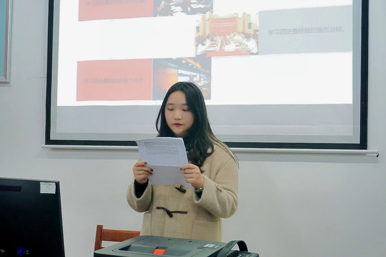 校习近平新时代中国特色社会主义思想读书社持续开展以“齐学‘四史’担使命,共话脱贫奔小康”为主题的宣讲活动。本次活动由何灵姗、王舒睿、沈锦榕、黄亚莹四位同学宣讲,传媒与会展学院第七组、财务与会计学院第一组的社员参加学习。